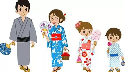 至于浴衣,其实也是和服的一种,是以绵为材质的简化版和服。由于穿浴衣只单穿一件,方便又凉爽,所以在夏天的庙会和花火大会…等等比较休闲的活动时,很多年轻人都会穿上浴衣赴会。