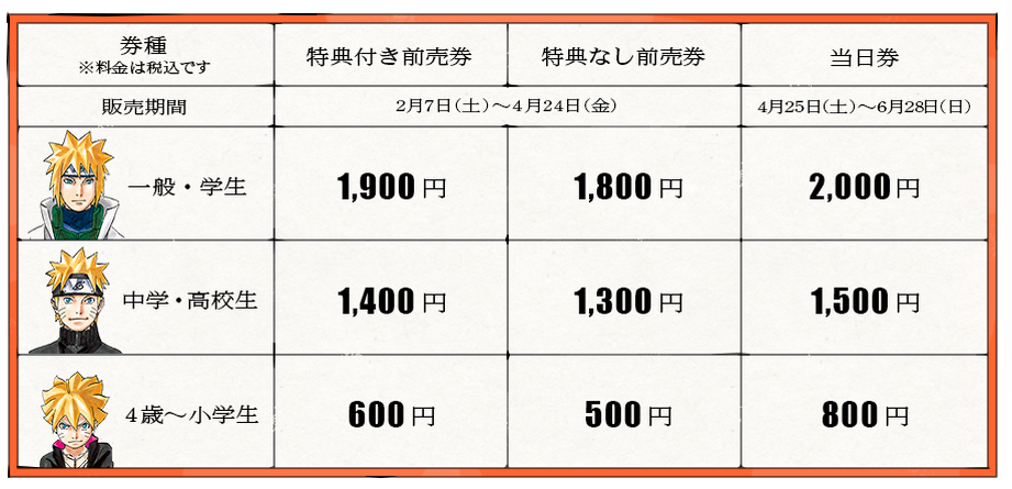 展览会上将披露连载时漫画原画,漫画中的著名场景还将通过立体造型和剧场放映等形式为观众呈现。会场里还将再现作者最初构思故事时所在的图书馆场景。届时,观众还可在会场购买到《火影忍者》相关的限定商品,先到先得!