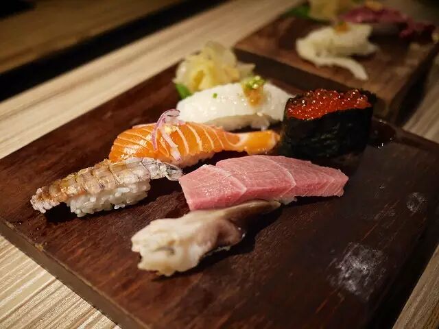 吃握寿司、生鱼片等,绝对不要把食物咬一半后再放回盘子里。 这是日本人的餐桌礼仪, 如果食物真的太大块也得硬塞,再用手遮嘴慢慢嚼。