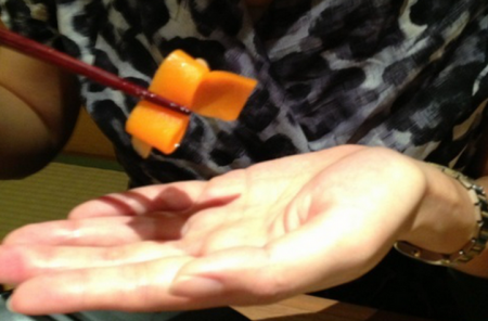 或许只是爱惜食物且体贴打扫的人, 怕吃饭时将食物碎屑掉落在桌上或避免酱汁滴落。 但对于日本人来说,这个「手皿」是很不礼貌的。