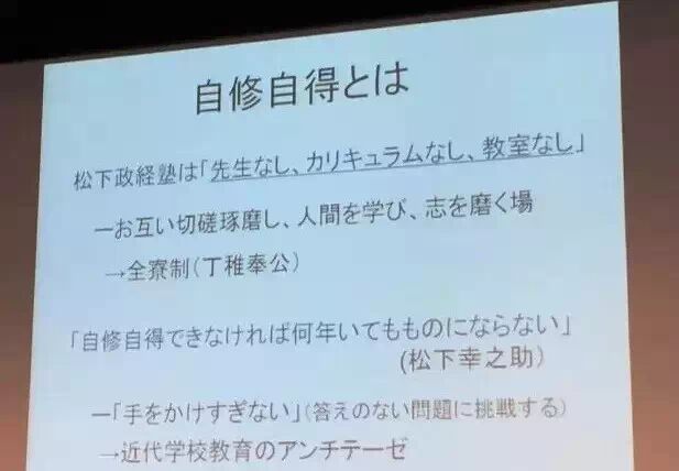 日本剑圣宫本武藏没有老师、没有课程、没有教室,却成就了一代剑圣。松下幸之助自己没有老师、没有课程、没有教室,却成就了经营之圣。晚年感叹于日本的政治领袖匮缺,一个决策偏差就会把一个国家带向灾难。于是,发心成立松下政经塾,他要把一个领袖成长所需要的真正必备的考验和磨难在这里复原。