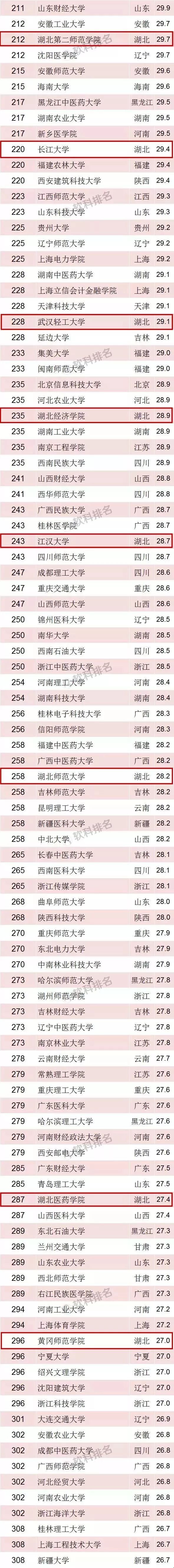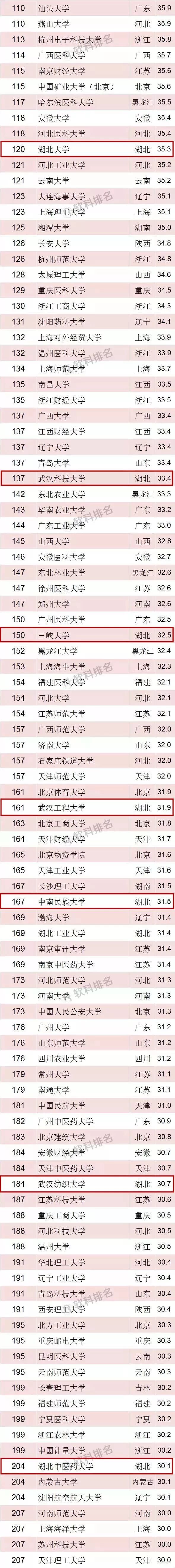 湖北取得怎样的成绩?湖北共有30所高校上榜,更骄傲的是湖北7所上榜全国百强,数量居全国第4。
