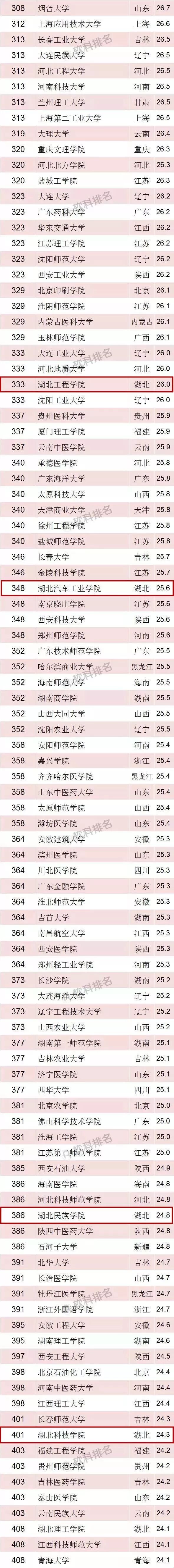 湖北科技学院(第401名)