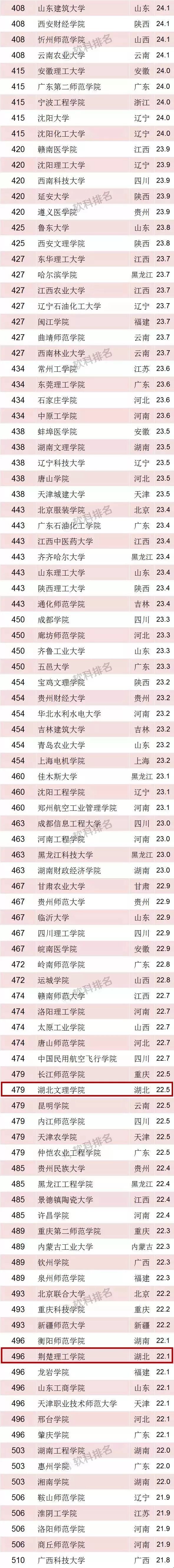 湖北文理学院(第479名)