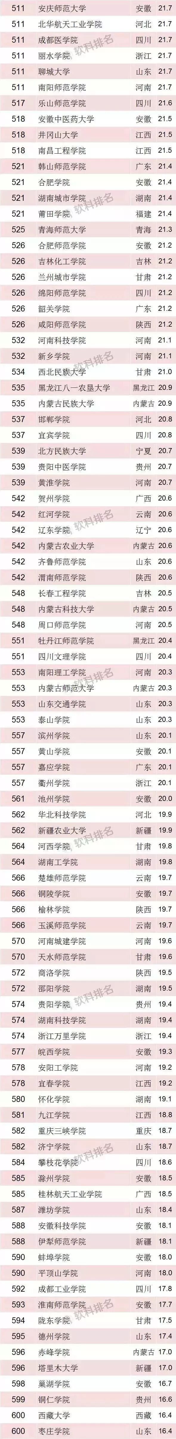 2018中国最好大学排行榜(600强全名单)