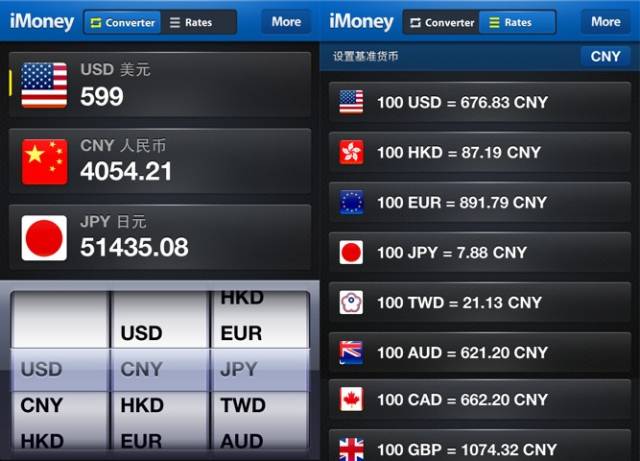 算汇率是不是很头疼?又是乘上又是除以的,上学时学的算术都忘得一干二净了,真有点玩不转,逛商场购物往往要死一大片脑细胞。自从有了iMoney就省事多了,32种常用货币换算,操作简单到了令人发指。