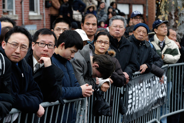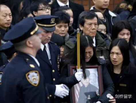 当天刘文建警官葬礼,全美数万警察参加,规格近乎“国葬”!新年全美戒严,就为了他。“海军陆战队的,FBI的发言人,副总统都来了……一个中国人在移民国家获得这样的类似国葬的尊重,恐怕也只有美国了。”一个参加葬礼的华人在微博上如是说。事实上,今天,确实也有很多很多华人专门从全美各地赶去参加葬礼。他们说,“刘文健是我们的英雄,他是第一个为美国的国土安全,为了纽约的安全献身的华裔警察,他代表了我们华人。”殡仪馆前人山人海,望不到头。