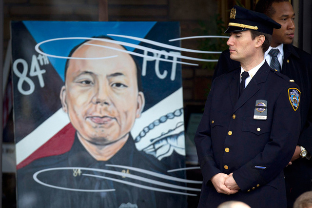 “他为自己是一名纽约市警察而自豪。他工作非常努力。不论工作时还是平时,他都勇敢无畏。”葬礼上,刘文建妻子含泪说。全场也哭了。