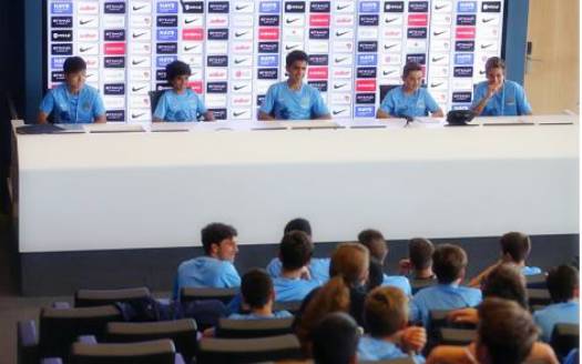 训练结束之后,在曼城的新闻发布会场地进行全真模拟赛后新闻发布会